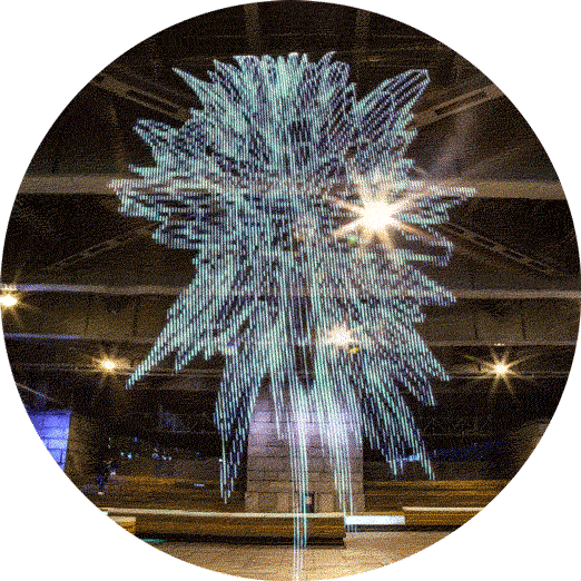 Сегодня при помощи промышленных роботов разрабатываются интерактивные площадки и стенды, кинетические инсталляции, перформансы, шоу-программы, экспериментальные технологические продукты на стыке инженерии и искусства.